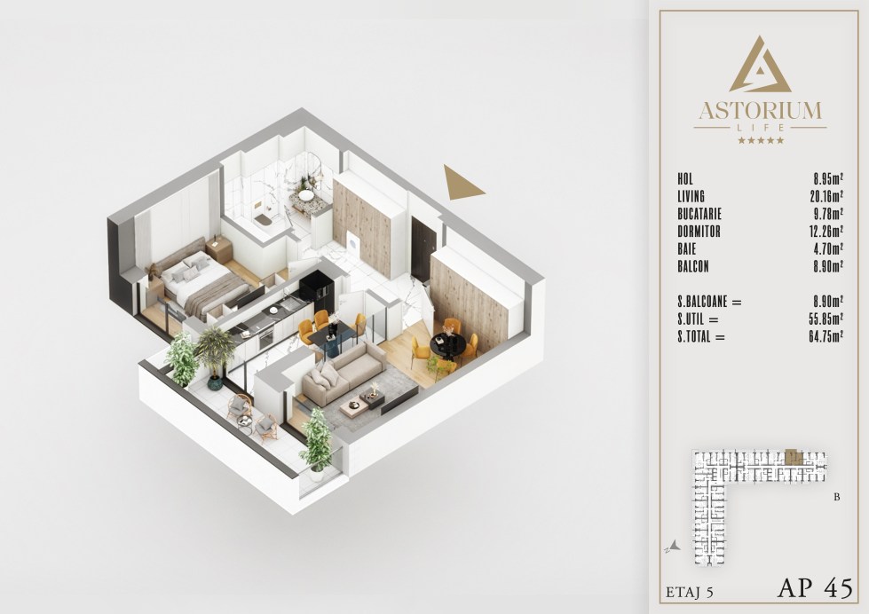 Posted on December 19, 2025 by astorel — Leave a commentApartament 2 camere Bloc B etaj 5 nr. 45 – Astorium Life