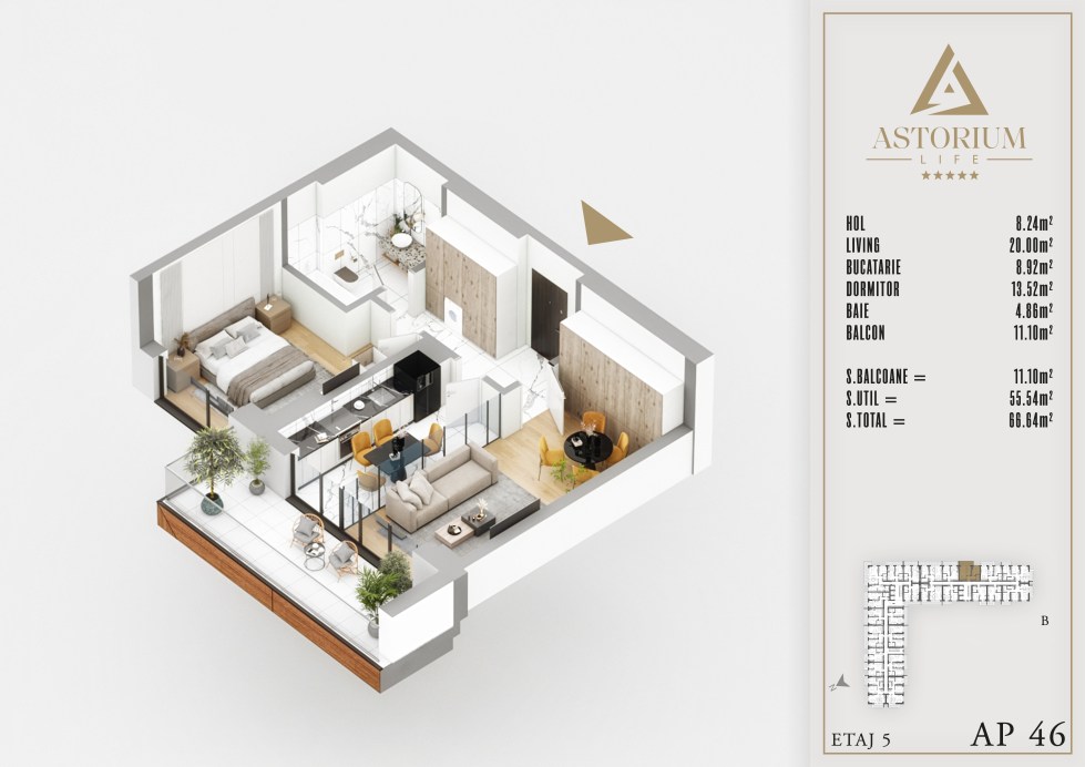 Posted on December 19, 2025 by astorel — Leave a commentApartament 2 camere Bloc B etaj 5 nr. 46 – Astorium Life