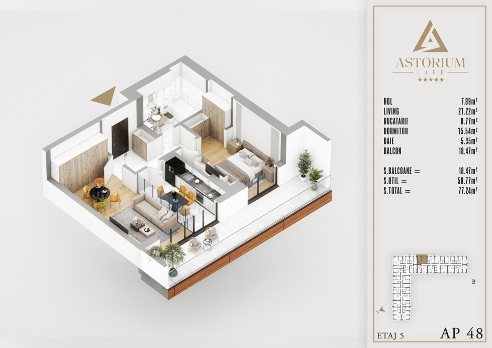 Posted on December 19, 2025 by astorel — Leave a commentApartament 2 camere Bloc B etaj 5 nr. 48 – Astorium Life