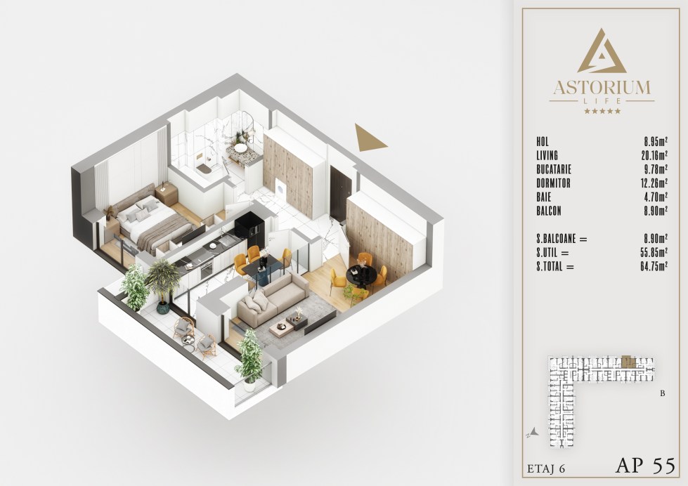 Posted on December 19, 2025 by astorel — Leave a commentApartament 2 camere Bloc B etaj 6 nr. 55 – Astorium Life