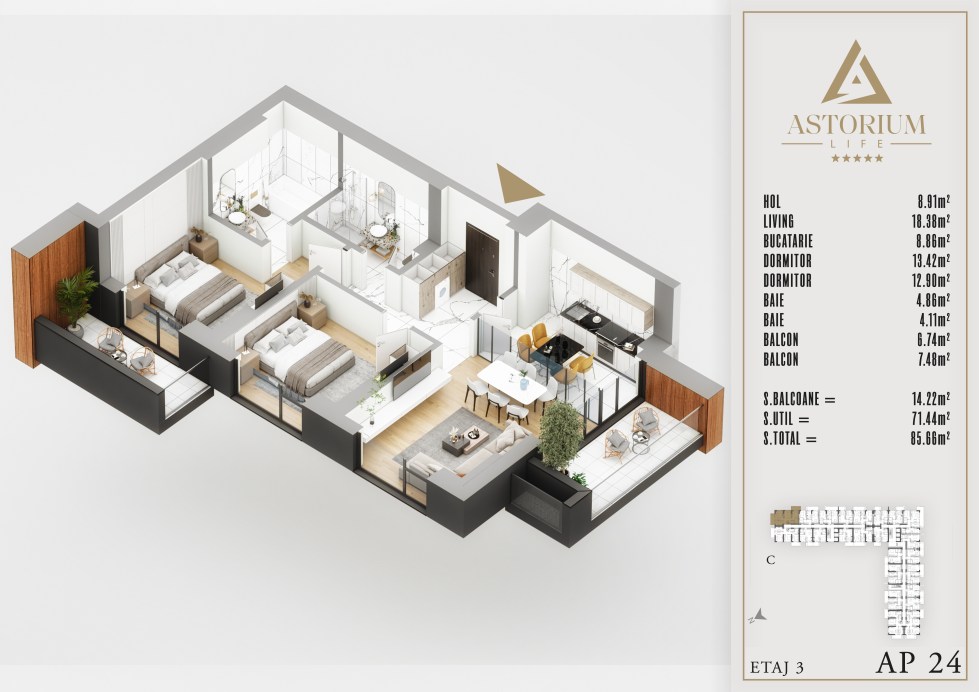 Posted on December 19, 2025 by astorel — Leave a commentApartament 3 camere Bloc C etaj 3 nr. 24 – Astorium Life