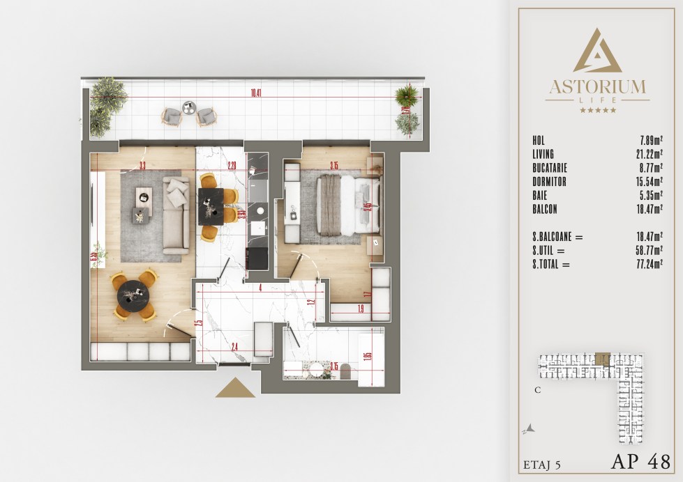 Posted on December 19, 2025 by astorel — Leave a commentApartament 2 camere Bloc C etaj 5 nr. 48 – Astorium Life