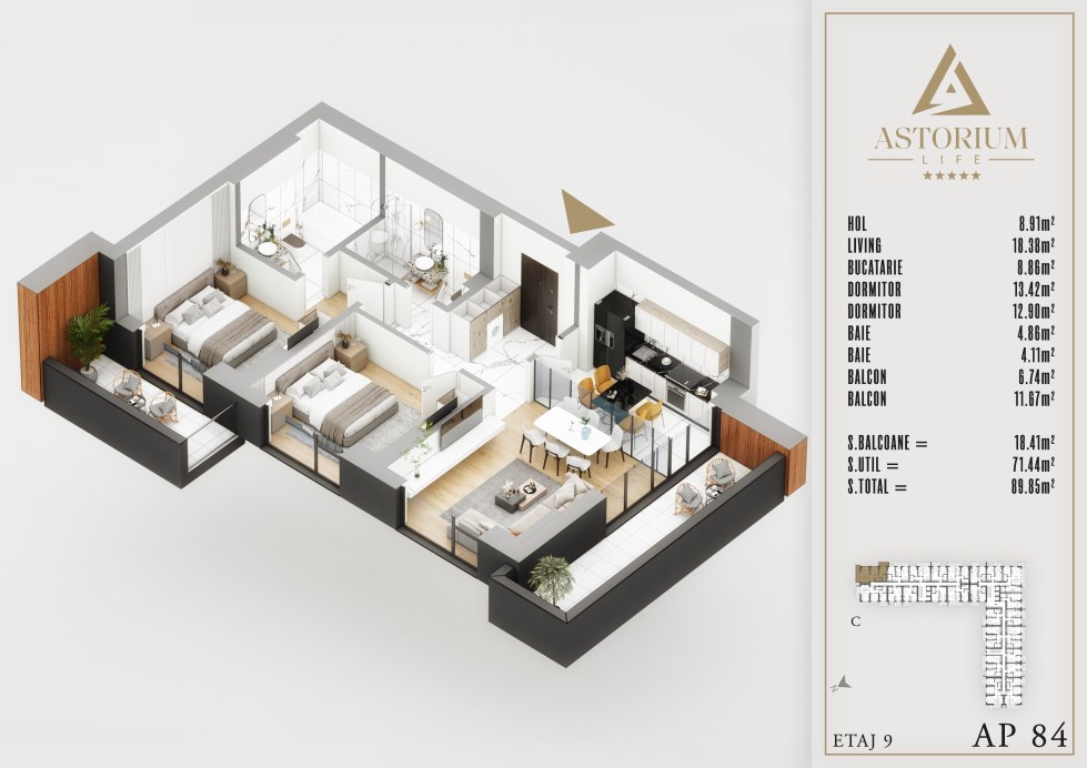 Posted on December 19, 2025 by astorel — Leave a commentApartament 3 camere Bloc C etaj 9 nr. 84 – Astorium Life