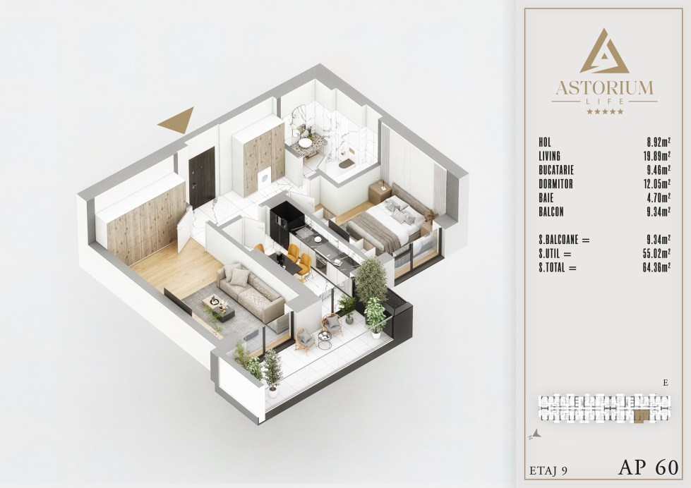 Posted on December 19, 2025 by astorel — Leave a commentApartament 2 camere Bloc E etaj 9 nr. 60 – Astorium Life