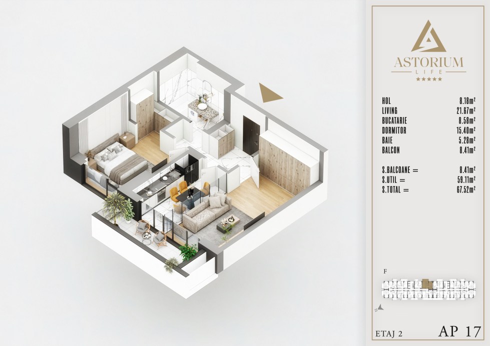 Posted on December 19, 2025 by astorel — Leave a commentApartament 2 camere Bloc F etaj 2 nr. 17 – Astorium Life