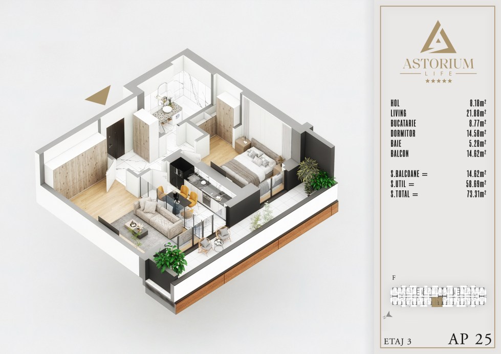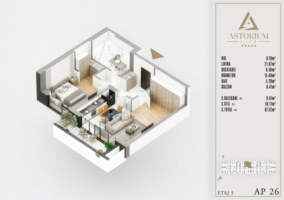 Posted on December 19, 2025 by astorel — Leave a commentApartament 3 camere Bloc F etaj 3 nr. 21 – Astorium Life