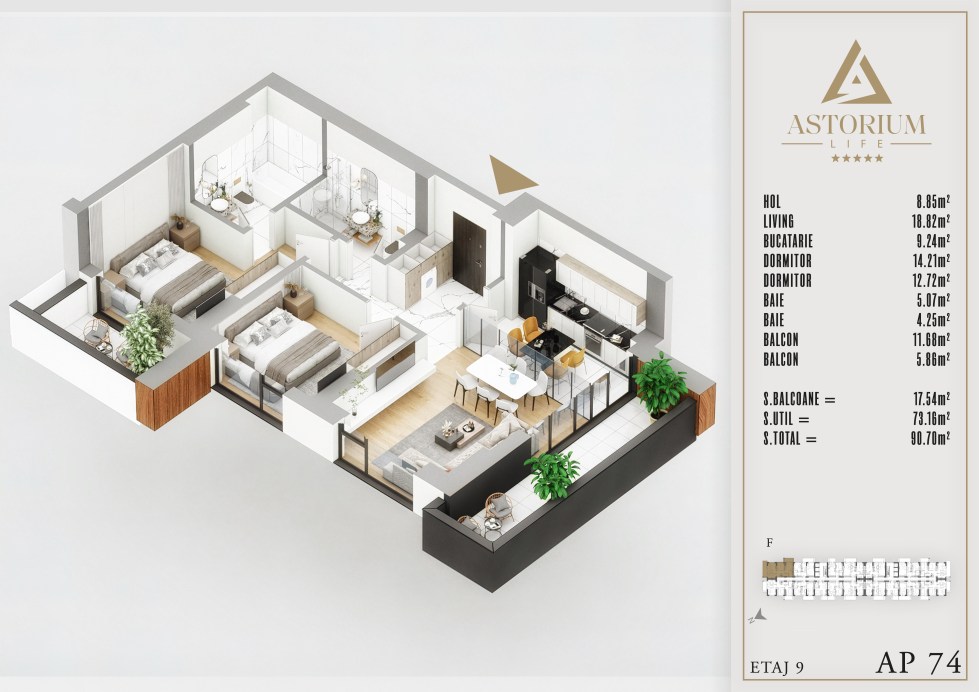 Posted on December 19, 2025 by astorel — Leave a commentApartament 3 camere Bloc F etaj 9 nr. 74 – Astorium Life