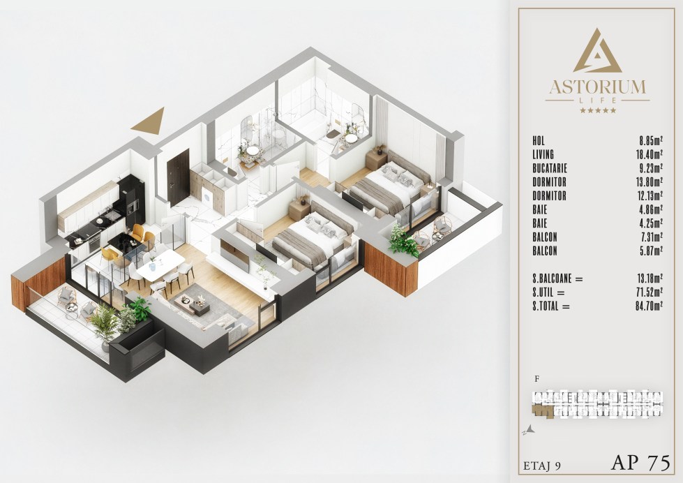 Posted on December 19, 2025 by astorel — Leave a commentApartament 3 camere Bloc F etaj 9 nr. 75 – Astorium Life