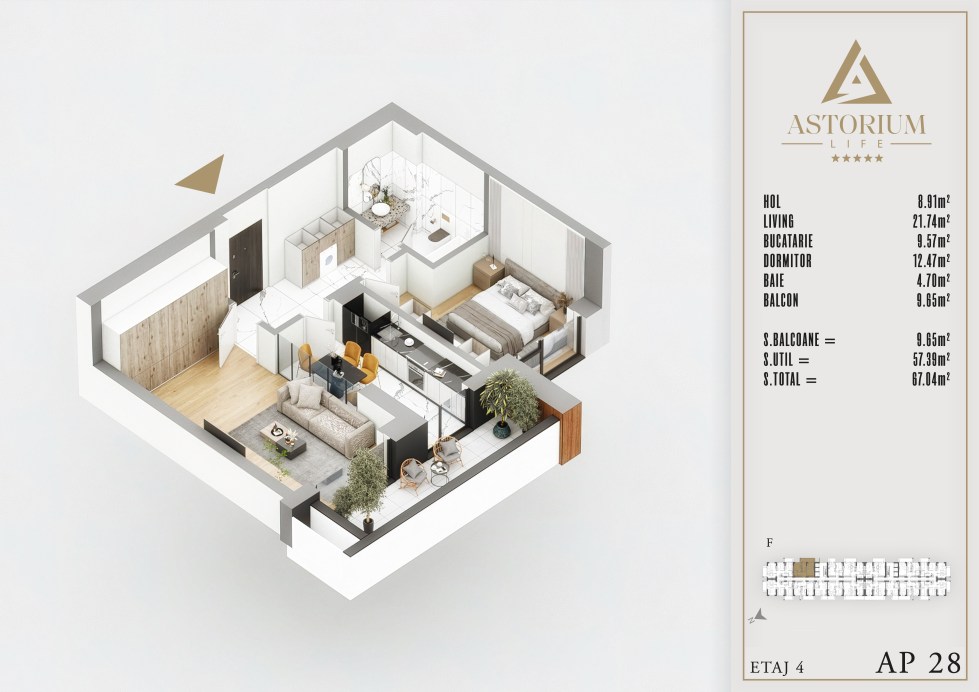 Posted on December 19, 2025 by astorel — Leave a commentApartament 2 camere Bloc F etaj 4 nr. 28 – Astorium Life