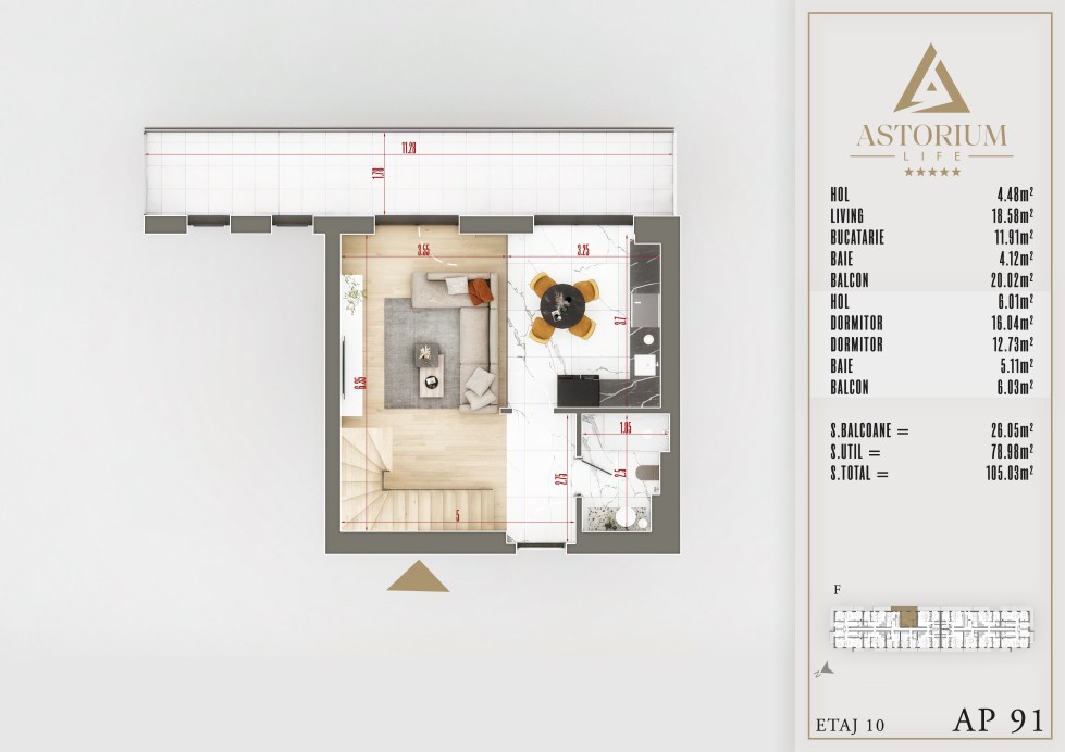 Posted on December 19, 2025 by astorel — Leave a commentApartament 3 camere Bloc F etaj 10 Inf +Sup nr. 91 – Astorium Life