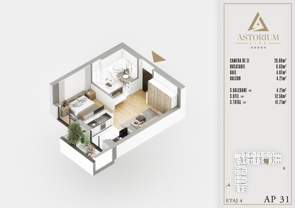 Posted on December 19, 2025 by astorel — Leave a commentGarsoniera Bloc B etaj 4 nr. 31 – Astorium Life