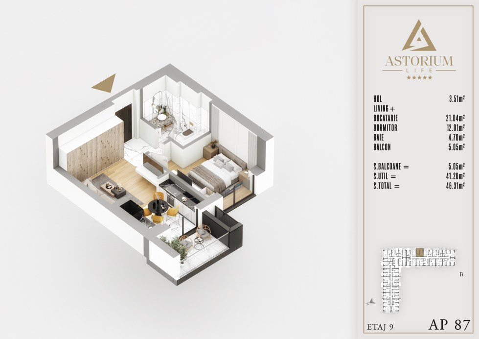 Posted on December 19, 2025 by astorel — Leave a commentGarsoniera Bloc B etaj 5 nr. 41 – Astorium Life