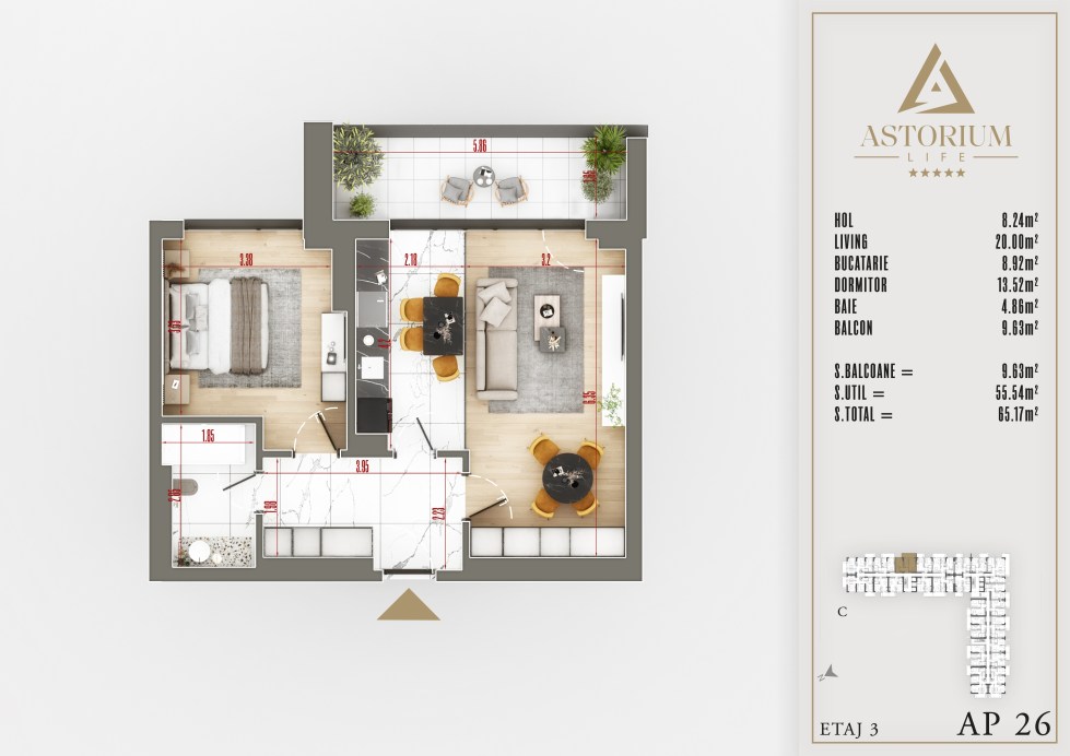 Posted on December 19, 2025 by astorel — Leave a commentApartament 2 camere Bloc C etaj 3 nr. 26 – Astorium Life