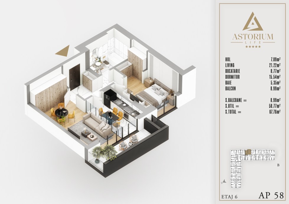 Posted on December 19, 2025 by astorel — Leave a commentApartament 2 camere Bloc B etaj 6 nr. 58 – Astorium Life