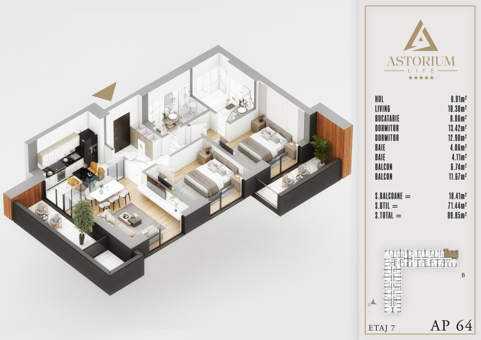 Posted on December 19, 2025 by astorel — Leave a commentApartament 3 camere Bloc B etaj 7 nr. 64 – Astorium Life