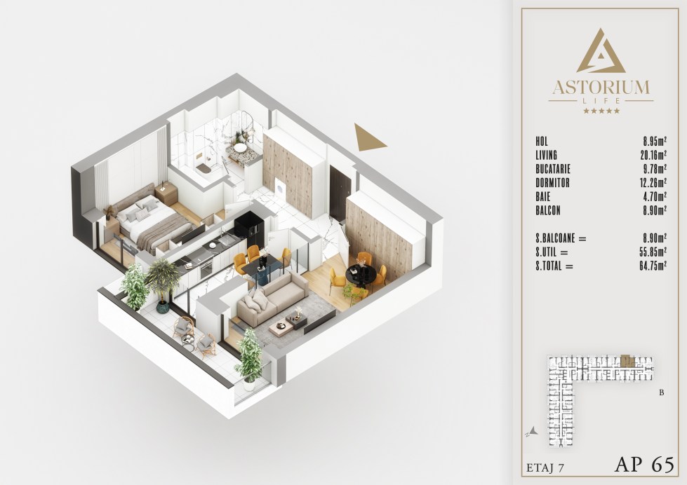 Posted on December 19, 2025 by astorel — Leave a commentApartament 2 camere Bloc B etaj 7 nr. 65 – Astorium Life