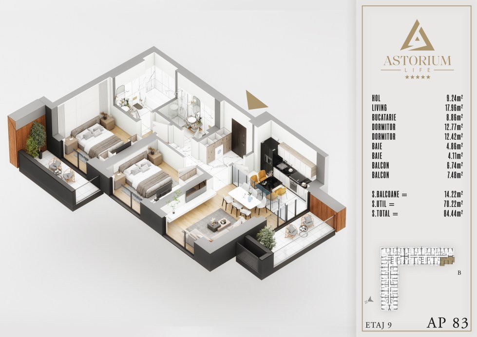Posted on December 19, 2025 by astorel — Leave a commentApartament 3 camere Bloc B etaj 9 nr. 83 – Astorium Life