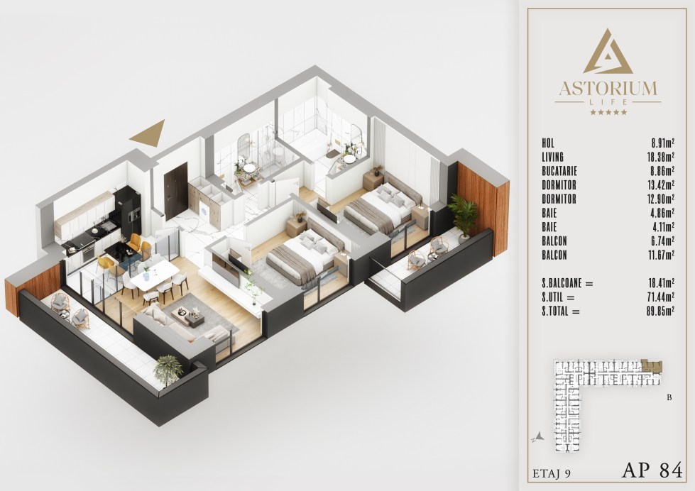 Posted on December 19, 2025 by astorel — Leave a commentApartament 3 camere Bloc B etaj 9 nr. 84 – Astorium Life