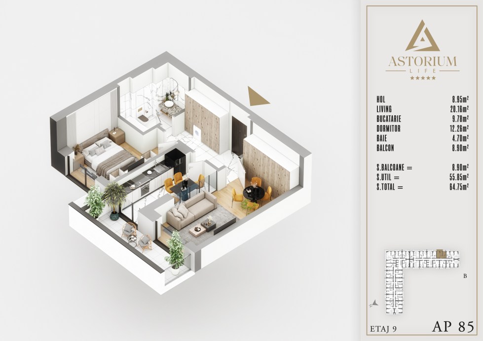 Posted on December 19, 2025 by astorel — Leave a commentApartament 2 camere Bloc B etaj 9 nr. 85 – Astorium Life