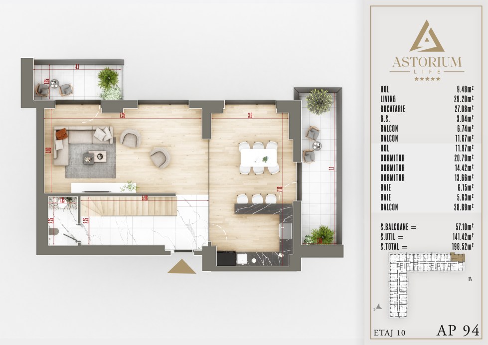 Posted on December 19, 2025April 15, 2026 by astorel — Leave a commentApartament 4 camere Bloc B etaj 10 Inf +Sup nr. 94 – Astorium Life